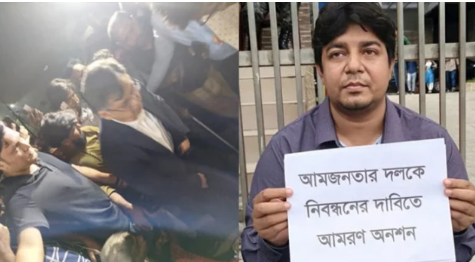 গত ৪ নভেম্বর বাংলাদেশ সমাজতান্ত্রিক দল (মার্কসবাদী), বাংলাদেশ আম জনগণ পার্টি ও জাতীয় নাগরিক পার্টি (এনসিপি)– এই তিনটি নতুন রাজনৈতিক দলকে নিবন্ধন দেওয়ার সিদ্ধান্ত নেয় নির্বাচন কমিশন (ইসি)। নিবন্ধন না পাওয়ায় ওই দিন বিকেল ৪টা থেকেই ইসির ফটকের সামনে অনশন শুরু করেন আমজনতা দলের সদস্যসচিব তারেক রহমান।