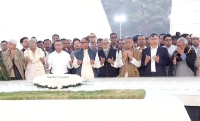 শুক্রবার (২৬ ডিসেম্বর) বিকেল ৪টা ৪০ মিনিটের দিকে তারেক রহমান শহীদ জিয়ার মাজারে পৌঁছান এবং জিয়ারত করেন।