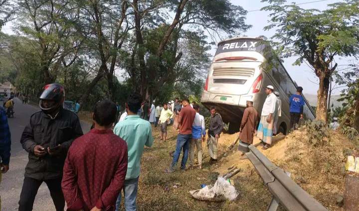 বাসটি নিয়ন্ত্রণ হারানোর কারণ হিসেবে প্রাথমিকভাবে স্থানীয়রা রাস্তার ভাঙা ও পিচ্ছিল অংশকে সমস্যার কারণ হিসেবে উল্লেখ করেছেন। যদিও যাত্রীদের মধ্যে কেউ গুরুতর আহত হননি, তবে দুর্ঘটনা প্রশাসনকে অবহিত করা হয়েছে।
