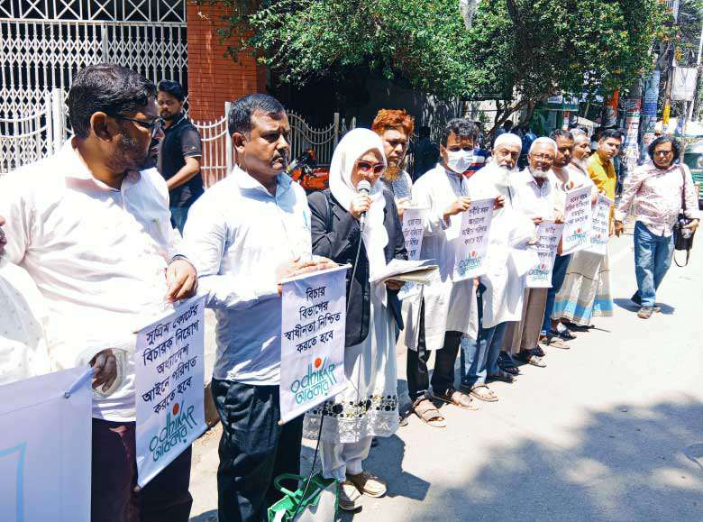 সমাবেশে প্রধান অতিথির বক্তব্যে বিশিষ্ট সাংবাদিক ও চট্টগ্রাম মহানগর জামায়াতে ইসলামীর অ্যাসিস্ট্যান্ট সেক্রেটারি মোহাম্মদ উল্লাহ বলেন, বিচার ব্যবস্থার ওপর জনগণের আস্থা বজায় রাখতে স্বচ্ছতা, জবাবদিহিতা ও আইনের নিরপেক্ষ প্রয়োগ নিশ্চিত করা জরুরি। এ লক্ষ্যে অন্তর্বর্তীকালীন সরকারের আমলে জারি হওয়া গুরুত্বপূর্ণ অধ্যাদেশগুলো বাতিল না করে দ্রুত সংসদে আইন হিসেবে পাশ করা প্রয়োজন।